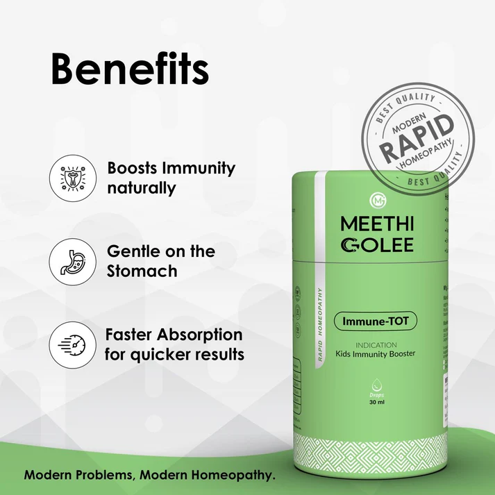 Immune-TOT is a homeopathic remedy designed to strengthen your child’s immunity, reduce the frequency of colds and fevers, and support overall energy and vitality.